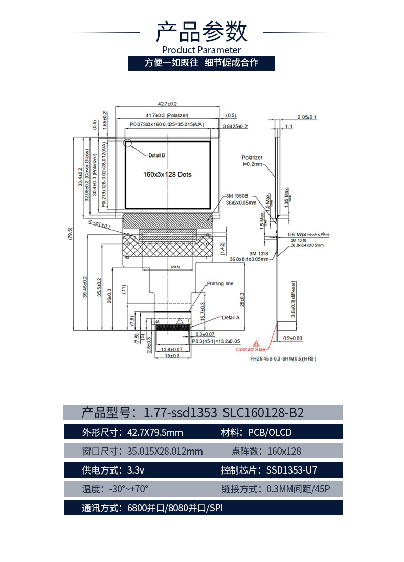 10040120M ID4 3121168031 display 1.77 OLED 160x128 45pin SSD1353 driver