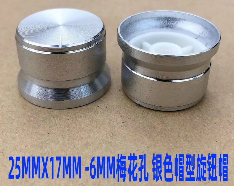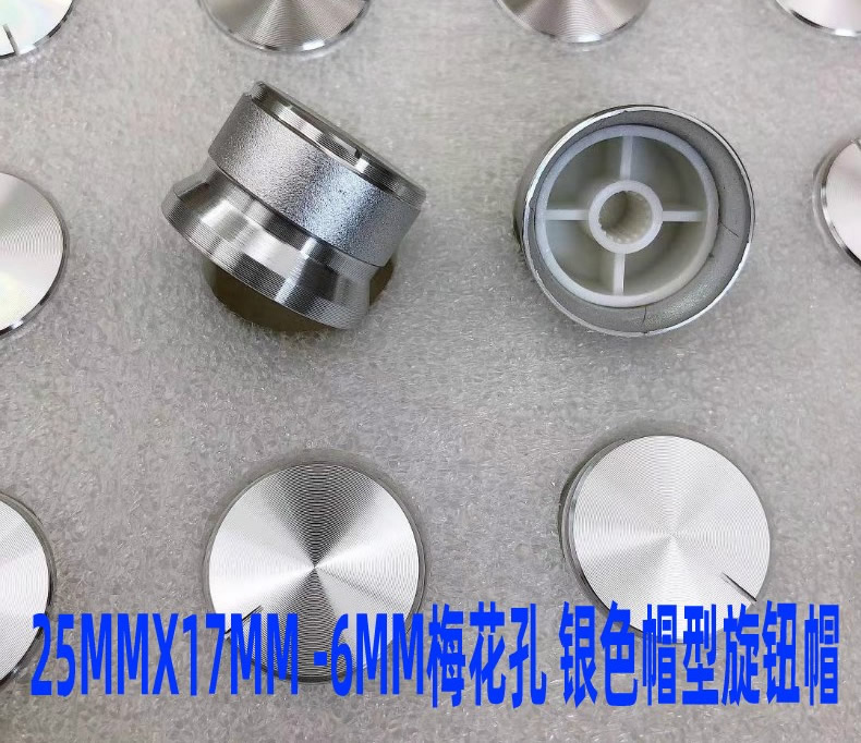 25MMX17MM aluminum alloy silver frosted cap potentiometer knob encoder speaker cover 6MM plum blossom hole