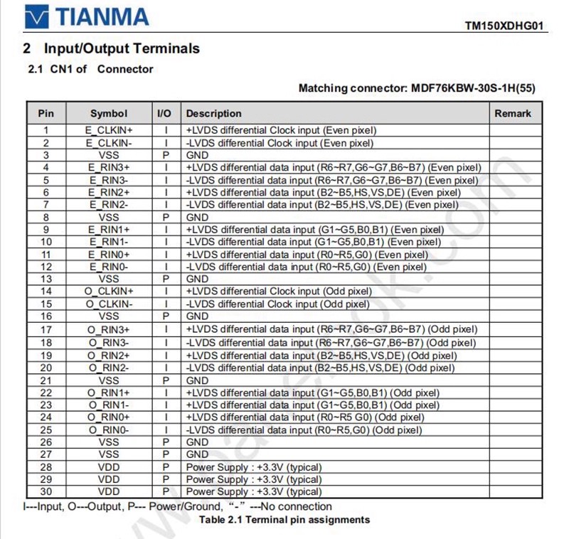 TM150XDHG01 Display CABLE